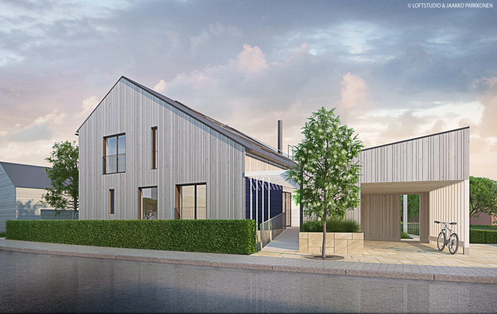 Paritalo | 3mh, k, oh, rh, kirjasto, wc + kivijalkassa 2h liiketila, pakari, s, wc, pukuh